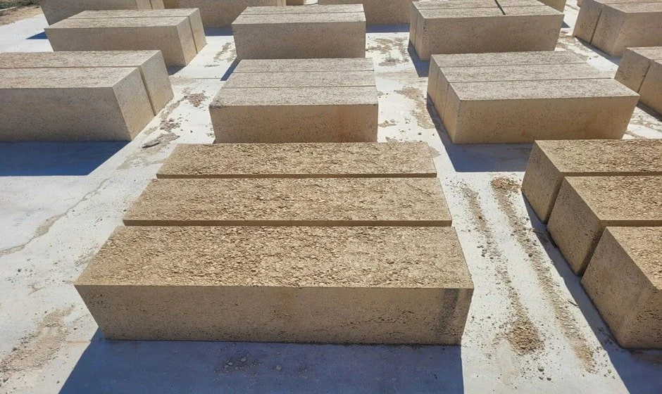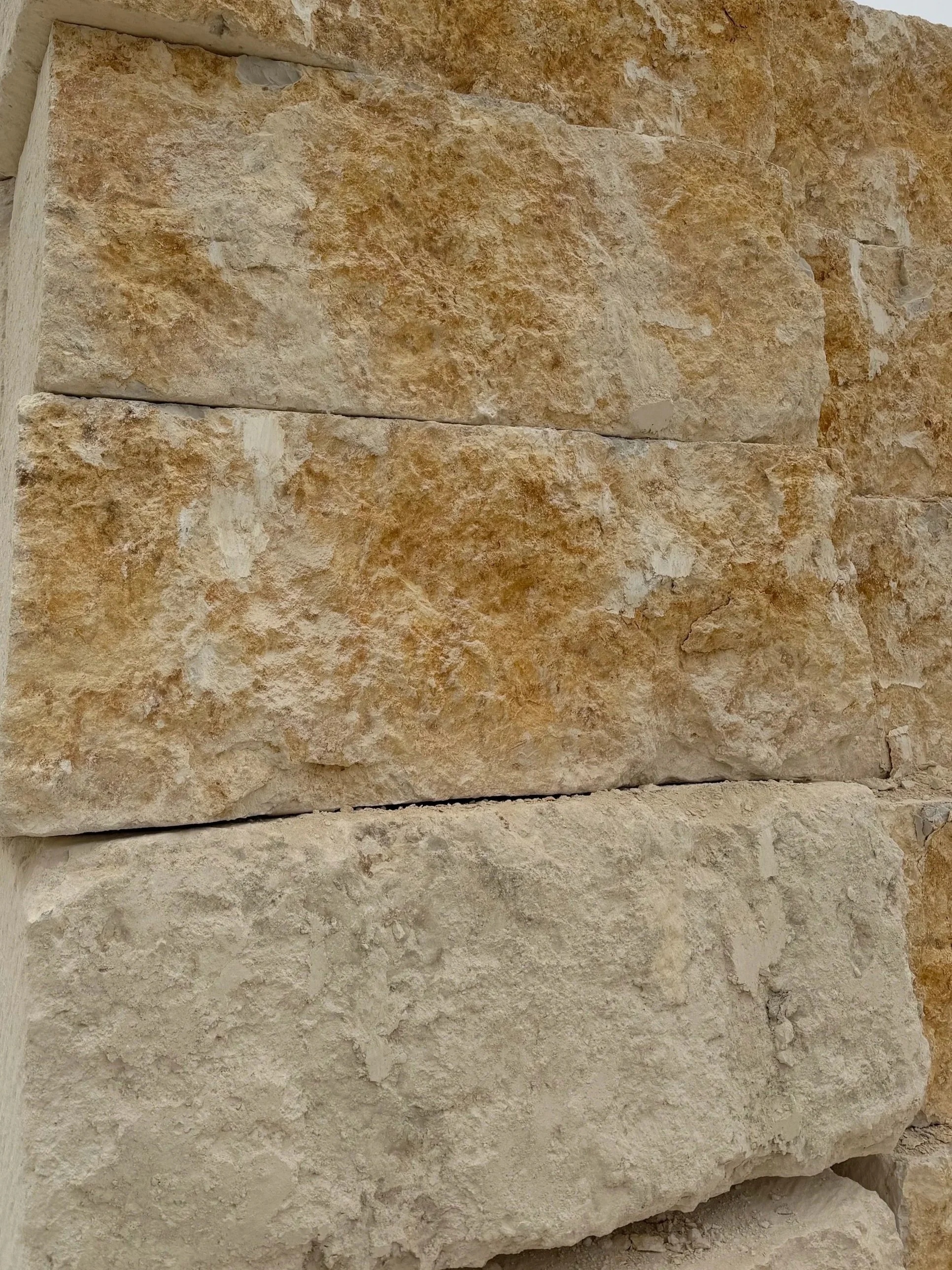 and water, designed for consistent size, shape, and structural performance. They provide excellent strength, fire resistance, and durability, making them widely used for walls, foundations, and other load-bearing applications. Their modular design allows for efficient construction and compatibility with a variety of finishes and architectural styles. Natural limestone blocks are quarried out of the ground using a Vermeer saw. They are not molded or formed unless they are sawn to a specific size. They come in an array of colors from bright white to a dark charcoal blue.